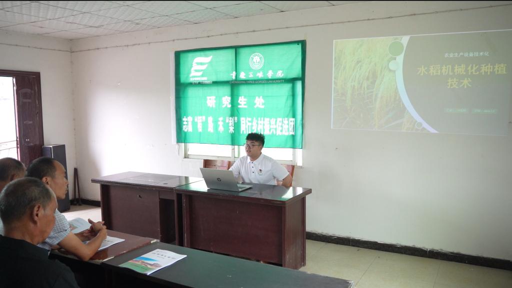 农业工程与信息技术(农业机械化)专业的叶松林同学从耕作技术、播种技术、农作物增产增效等方面介绍了农业机械化种植情况,并提出了自己的看法与建议。农艺与种植专业的杨脂胭同学从农业病虫害入手,结合当地秋月梨、水稻种植情况分析了当地农业发展可采用的措施。