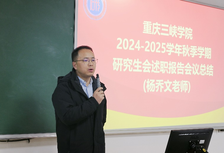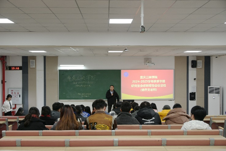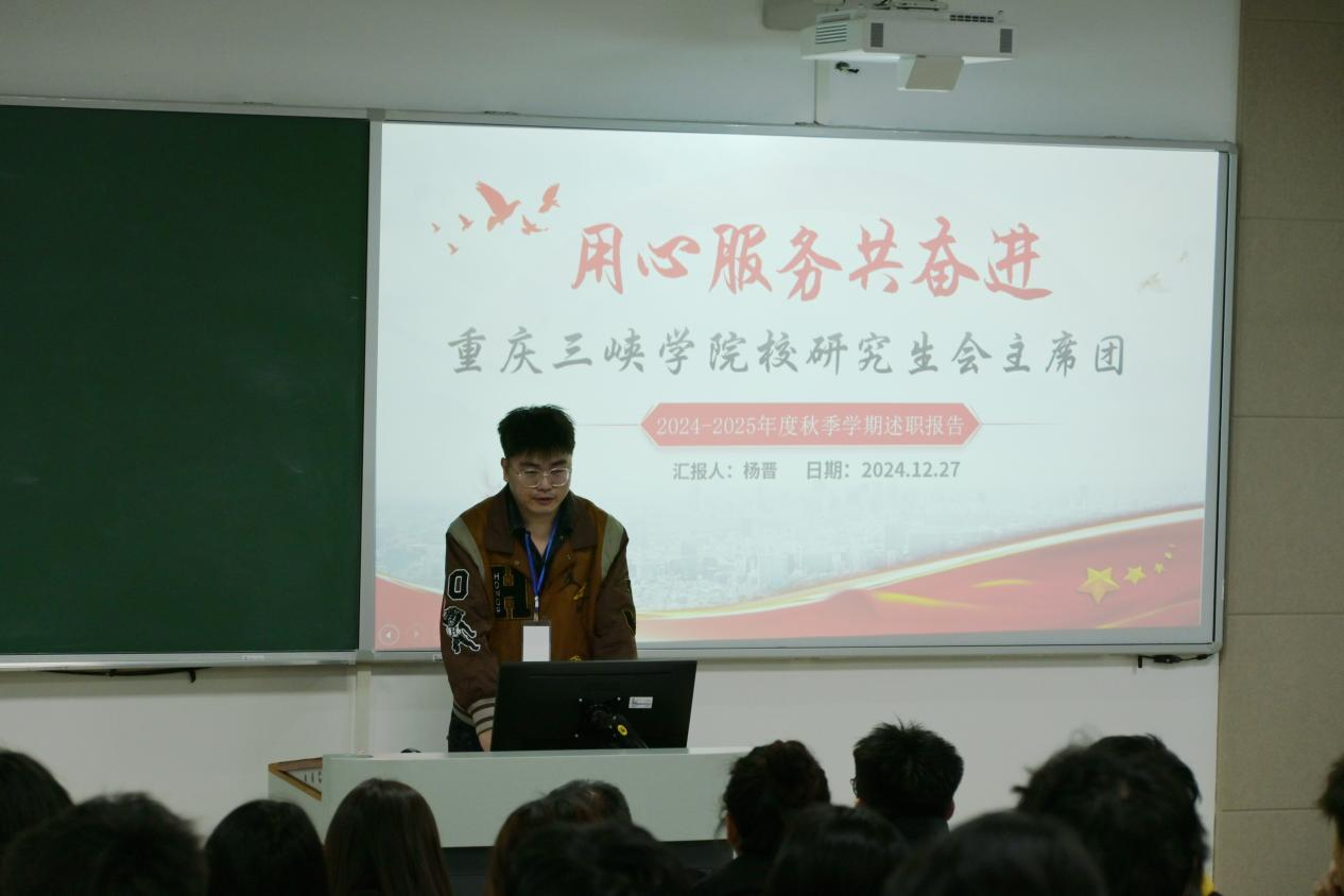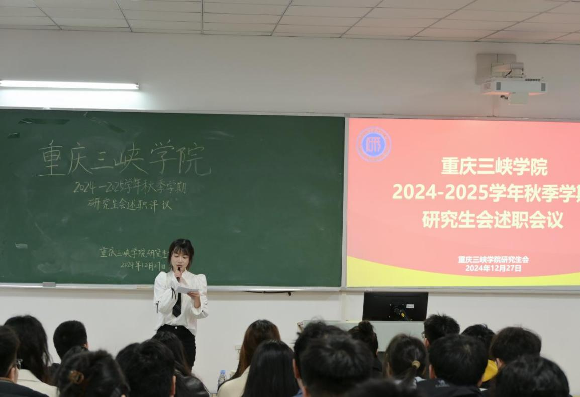 12月27日上午,44118太阳成tyc城集团研究生会2024—2025学年秋季学期的述职评议大会在博学楼1栋301教室顺利召开。44118太阳成tyc城集团杨乔文老师、周源老师、重庆警察学院学生会主席团成员陈思岐同学以及部分二级学院研究生会主席团和部分研代会常任代表出席本次会议。会议主要包括校研究生会主席团述职报告、研究生会各部门述职报告和44118太阳成tyc城集团老师总结讲话三个环节。