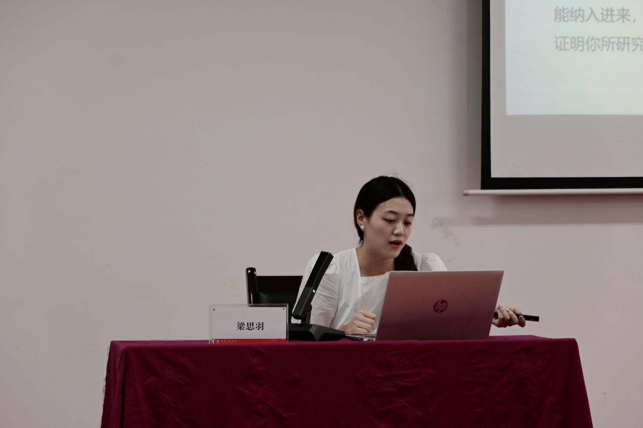 教师教育学院2022级小学教育专业谭文晰同学,结合出版学术专著《主体感悟取向的儿童心理辅导:设计模式构建与案例研究》的实践经历,以“研究生如何出版专著”为主题,系统阐释专著选题策划、撰写要点、出版流程与渠道选择等关键环节。她提出,选题应立足学科前沿与教育实践需求,撰写时需注重理论深度与实践案例的有机融合,出版社选择从专业领域匹配度、学术影响力、出版周期等维度综合评估。在回答“如何平衡专著写作与日常学业”等问题时,她分享了“时间网格化管理法”,建议将写作任务拆解为阶段性目标,利用碎片化时间推进,辅以定期复盘调整计划,为同学们提供了切实可行的操作方案。