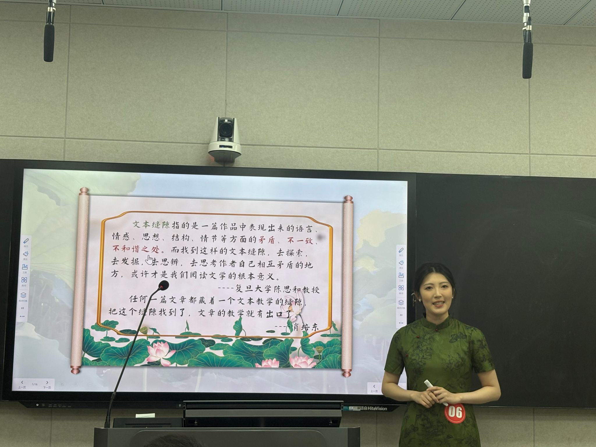 此次比赛分为教学设计、即兴演讲和模拟授课三个环节。即兴演讲环节,选手紧扣教育热点,观点鲜明、表达流畅,展现了敏锐的思维与深刻的教育理解。模拟授课环节,选手精心设计教学环节,凭借细腻的文本解析与沉浸式情境创设,充分诠释了语文课堂的人文底蕴,赢得了评委与观众一致好评。